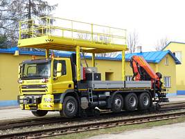 Le véhicule Rail-Route DAF CF85 DUOLINER est conçu pour rouler et intervenir sur routes ainsi que sur voies ferrées publiques ou privées. Ce véhicule est équipé d’une plate-forme fixe, d’une capacité de charge de 800 kg, utilisée pour l'installation d’équipements en hauteurs ainsi que d’une grue de chargement hydraulique de capacité 22tm, située à la partie arrière du véhicule. Cette grue est conçue pour la manutention, ou pour travailler avec un panier. Le véhicule est conçu avec un système de réglage d’écartement de roues rail permettant de rouler sur des voies de 1435 ou de 1520mm.