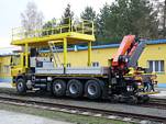 Les deux bogies d’entrainement ferroviaires à quatre roues et sont situés derrière les essieux routiers. Le véhicule est équipé avec transmission hydrostatique et peut également utiliser le régime microdrive. L’enraillement est facilitié par le mécanisme d'orientation du bogie arrière. Une télécommande de pilotage est proposée en option. Le mouvement des mécanismes est hydraulique et il est commandé électriquement à partir des panneaux de commande latéraux situés sur le véhicule ou à partir de la cabine du conducteur. Le véhicule est équipé d’un système de rétrovision avec un écran LCD couleur dans la cabine du conducteur, de boutons d‘arrêt d'urgence situés le long du véhicule, d‘un système d‘éclairage de la voie ferrée, et d'un système d'éclairage de la plateforme pour le travail de nuit.
